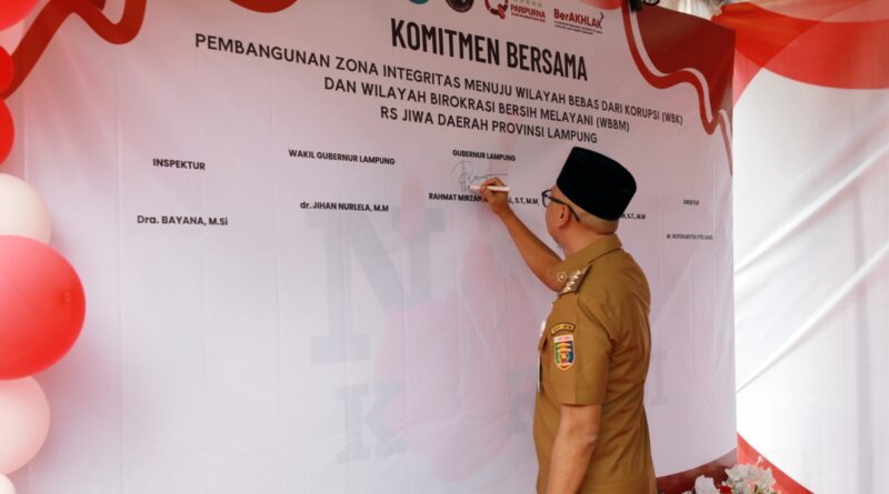 Hari ini, jelas Gubernur Mirza, RS Jiwa Provinsi Lampung telah menandatangani pakta integritas sebagai salah satu syarat untuk mendapatkan predikat WBK. “Hari ini, kami melaksanakan penandatanganan rumah sakit jiwa sebagai zona integritas,” ujar Mirza. “Kami bangga, kami senang, RS Jiwa Provinsi Lampung tahun ini mewakili Provinsi Lampung untuk meraih WBK, wilayah bebas korupsi.” ujarnya.