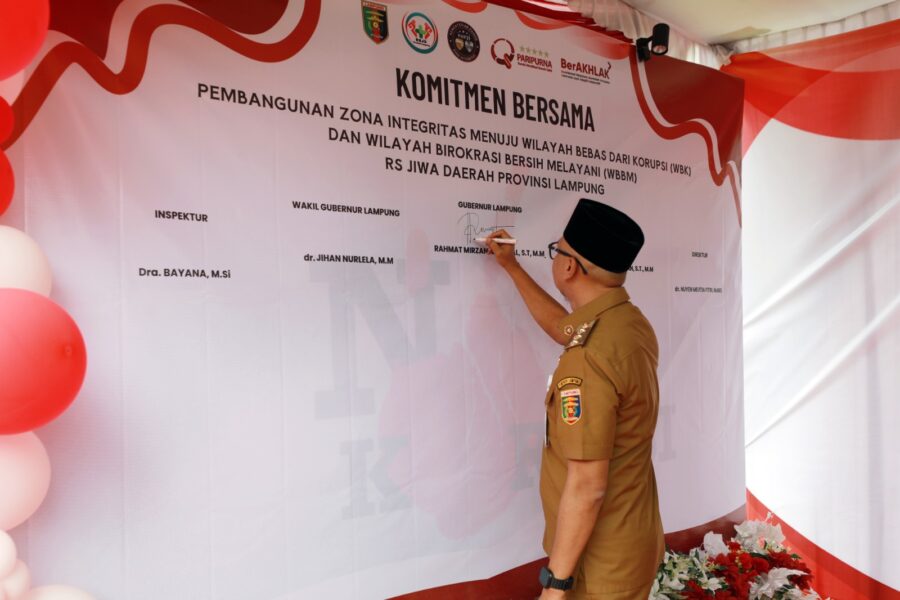 Langkah tersebut dimulai dari upaya meraih predikat WBK dan WBBM dari Rumah Sakit Jiwa Daerah (RSJ) Provinsi Lampung melalui penandatanganan pakta integritas WBK dan WBBM yang berlangsung di RSJ Daerah Provinsi Lampung Kurungan Nyawa, Selasa (12/8/2025).