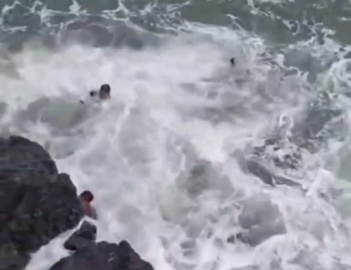 ‎Peristiwa yang terekam video dan beredar di WhatsApp pada Minggu (16/11/2025) itu memperlihatkan keduanya terseret ombak ketika berdiri di atas batu karang.
