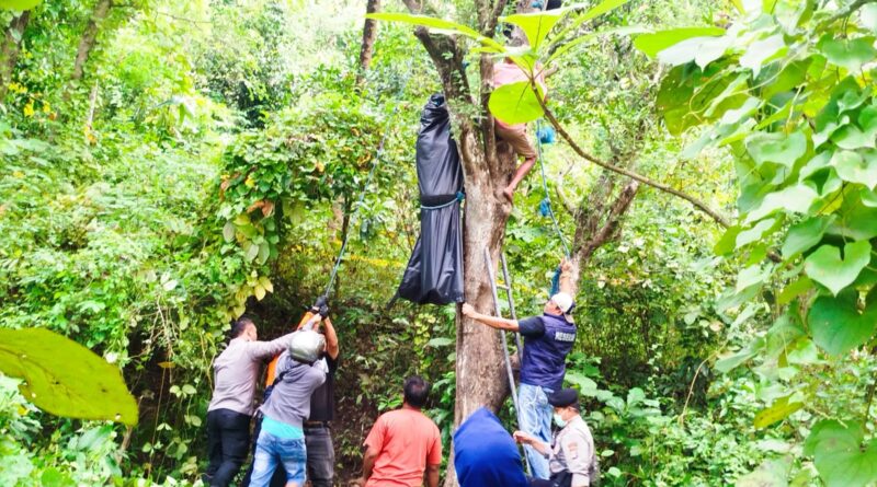 “Istri saya tiba-tiba teriak histeris sambil lari ke arah saya, katanya ada orang gantung diri di pohon,” ujar Suhadi saat ditemui di lokasi.