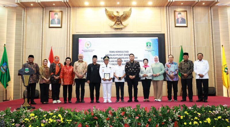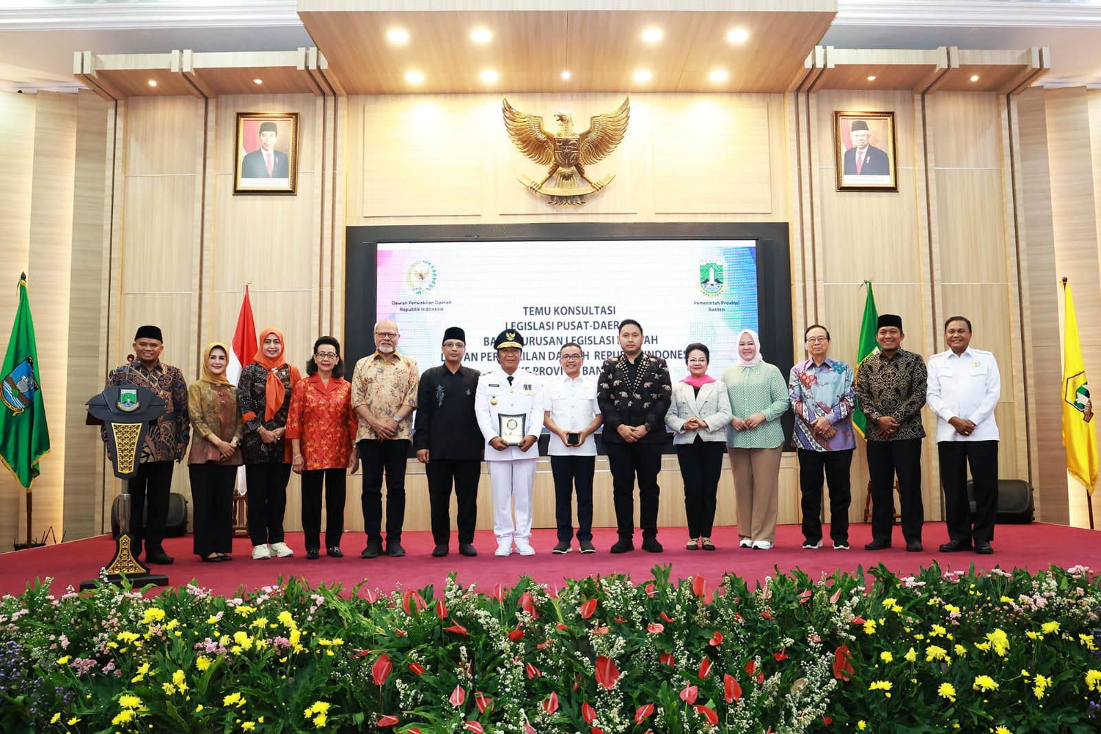 FAJARLAMPUNG.COM – Banten, Penjabat (Pj) Gubernur Banten Al Muktabar sambut kedatangan Dewan Perwakilan Daerah (DPD) Republik Indonesia dalam rangka temu Konsultasi Pusat-Daerah Badan Urusan Legislasi Daerah (BULD) di Pendopo Gubernur Banten KP3B, Curug Kota Serang, Kamis (16/11/2023). Agendanya, menjembatani aspirasi kepentingan daerah apabila terdapat kendala dalam proses pembentukan Peraturan Daerah terkait perizinan di sektor pertambangan, kehutanan, dan lingkungan hidup.