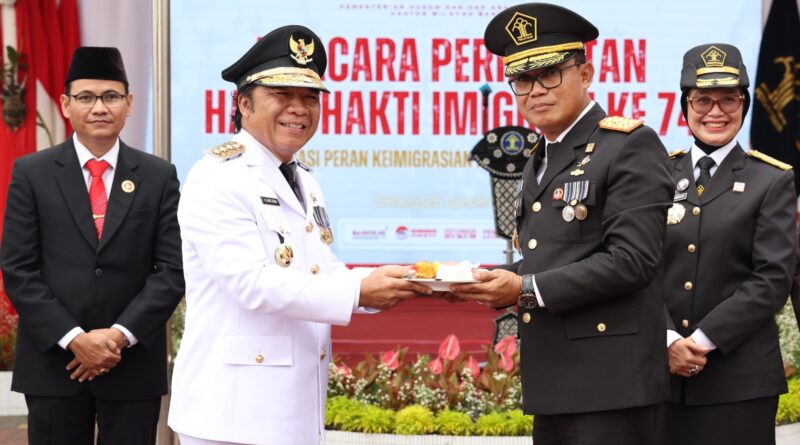FAJARLAMPUNG.COM – Serang, Penjabat (Pj) Gubernur Banten Al Muktabar menjadi Inspektur Upacara Peringatan dan Syukuran Hari Bhakti Imigrasi ke-74 di lapangan Kantor Wilayah Kementerian Hukum dan HAM Provinsi Banten di Jl. Brigjen KH Syam’un No. 44D, Kota Serang, Jum’at, (26/01/2024).