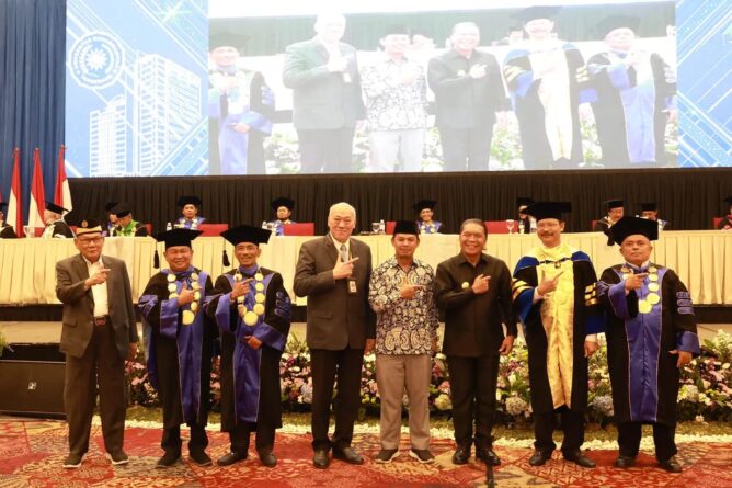 FAJARLAMPUNG.COM – Banten, Penjabat (Pj) Gubernur Banten Al Muktabar menghadiri wisuda Universitas Muhammadiyah Tangerang (UMT) di Nusantara Hall, ICE BSD, Kecamatan Pagedangan, Kabupaten Tangerang Rabu, (11/10/2023). Al Muktabar menyampaikan, sebagai generasi penerus bangsa para wisudawan atau sarjana harus turut berperan aktif untuk memajukan dan meraih reputasi secara nasional dan internasional.