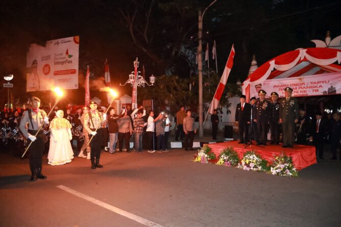 FAJARLAMPUNG.COM – Serang, Penjabat (Pj) Gubernur Banten Al Muktabar mengikuti Peringatan Upacara Taptu Kepolisian Daerah Banten di depan Gedung Negara Provinsi Banten Jl. Brigjen KH Syam’un No. 5 Kelurahan Kota Baru, Kota Serang, Rabu malam (16/8/2023). Upacara Taptu merupakan rangkaian Peringatan Hari Ulang Tahun Kemerdekaan Republik Indonesia Ke-78.