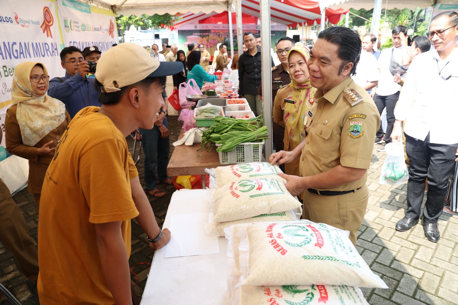 Hal itu diungkap Al Muktabar usai meninjau Gerakan Pangan Murah (GPM) Provinsi Banten pada Apel Siaga Pengamanan Pasokan dan Harga Pangan Jelang Idul Fitri 2024 secara daring dari Halaman Kantor Dinas Ketahanan Pangan Provinsi Banten, KP3B Curug, Kota Serang, Senin (1/4/2024). GPM digelar serentak pada 38 Provinsi di 514 Kabupaten/Kota.