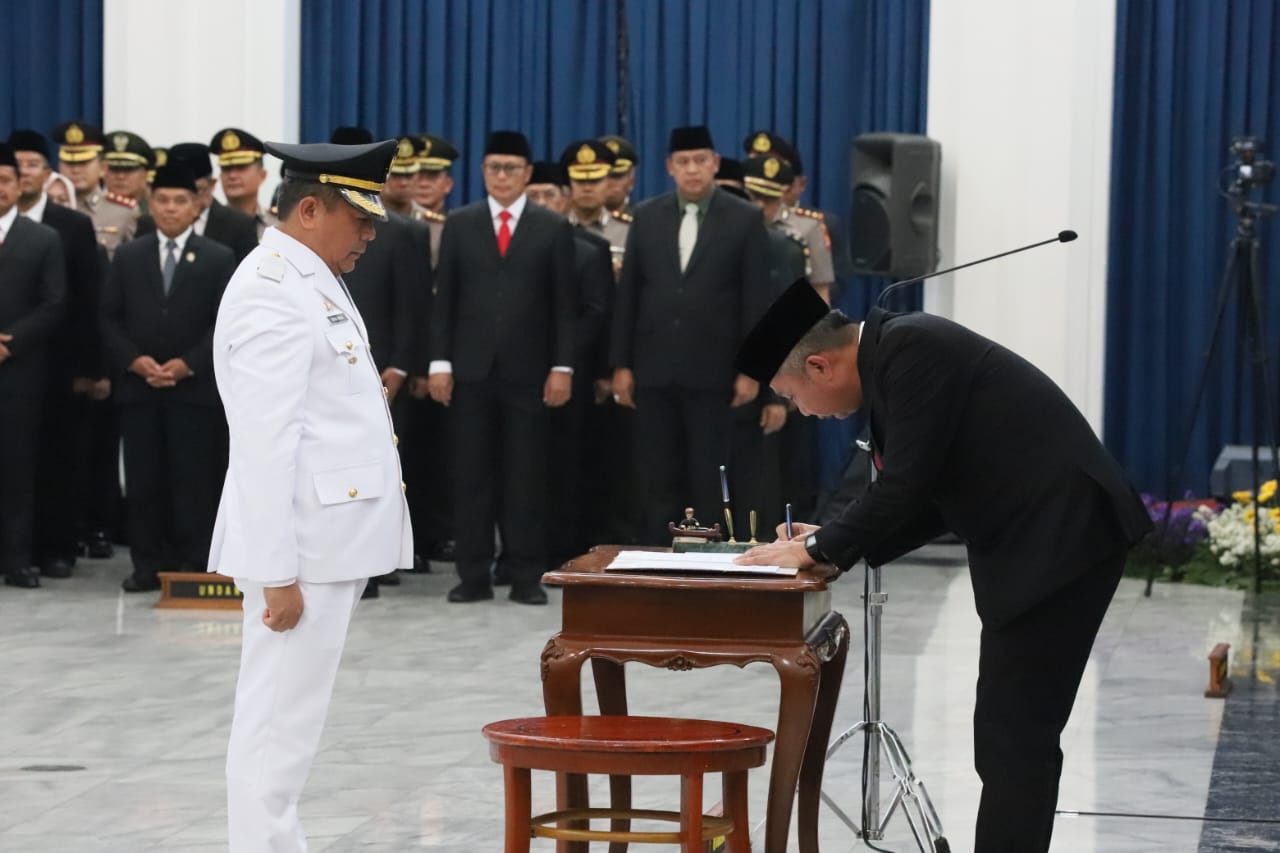 FAJARLAMPUNG.COM – Bandung, Penjabat (Pj.) Gubernur Jawa Barat Bey Triadi Machmudin melantik Benni Irwan sebagai Pj. Bupati Purwakarta. Pelantikan tersebut berlangsung di Gedung Sate, Bandung, Jawa Barat, Rabu (20/9/2023).