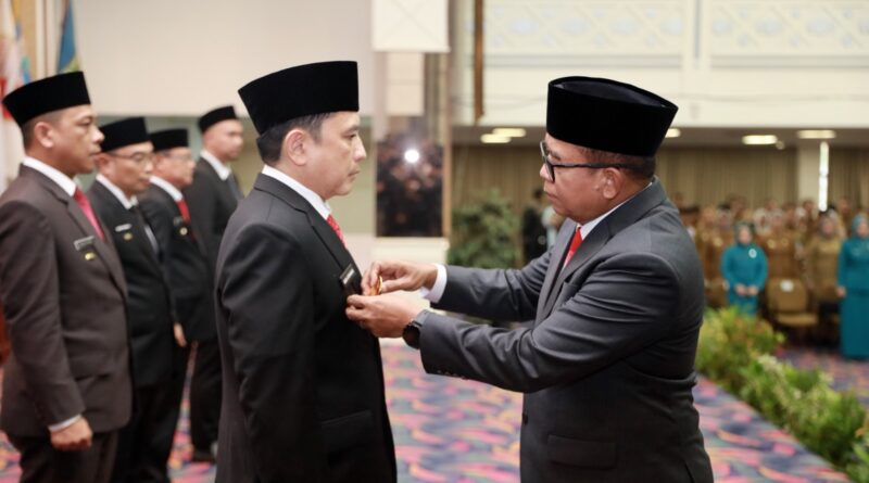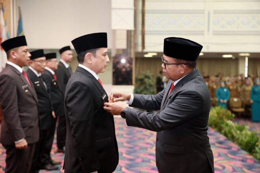 FAJARLAMPUNG.COM, Bandar Lampung – Penjabat (Pj) Gubernur Lampung Samsudin mengukuhkan 4 Pejabat Pimpinan Tinggi Pratama sebagai Penjabat Sementara (Pjs) Bupati/Walikota. Mereka adalah Asisten Administrasi Umum Provinsi Lampung Senen Mustakim sebagai Pjs. Bupati Lampung Timur dan Kepala Dinas Pariwisata dan Ekonomi Kreatif Provinsi Lampung Bobby Irawan sebagai Pjs. Bupati Lampung Tengah.
