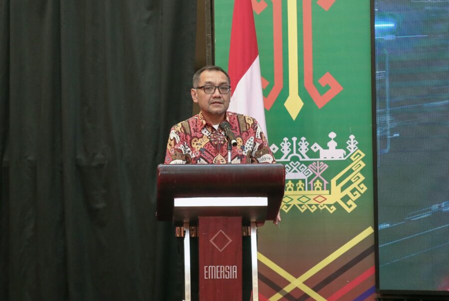 Pj. Gubernur Samsudin sebagai narasumber pertama menjelaskan mengenai strategi mempercepat transformasi digital dalam pendidikan di Provinsi Lampung.