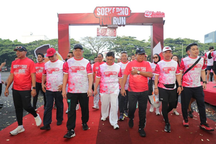 FAJARLAMPUNG.COM, Bandar Lampung – Pj. Gubernur Lampung Samsudin bersama Gubernur Lampung terpilih Rahmat Mirzani Djausal ikut memeriahkan Soekarno Fun Run di Lapangan Saburai Enggal Bandarlampung, Minggu (26/1/2025).