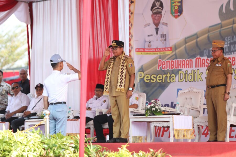 FAJARLAMPUNG.COM, Pringsewu – Pj. Gubernur Lampung Samsudin menjadi Pembina Apel Pembukaan Masa Pengenalan Lingkungan Sekolah (MPLS) Peserta Didik Baru SMA/SMK Negeri/Swasta Se-Provinsi Lampung Tahun Ajaran 2024/2025, di Wisata Bendungan Way Sekampung Kabupaten Pringsewu, Senin (15/7/2024).