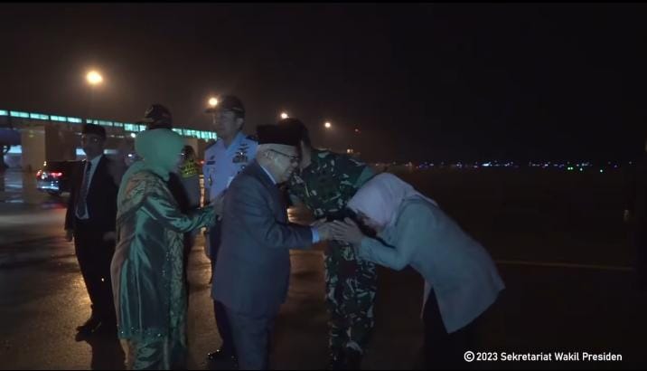 “Alhamdulillah kita berkesempatan mengantar keberangkatan kunjungan kerja Wapres beserta rombongan. Semoga kunjungan kerja ini dapat berjalan lancar,” ungkap Virgojanti.