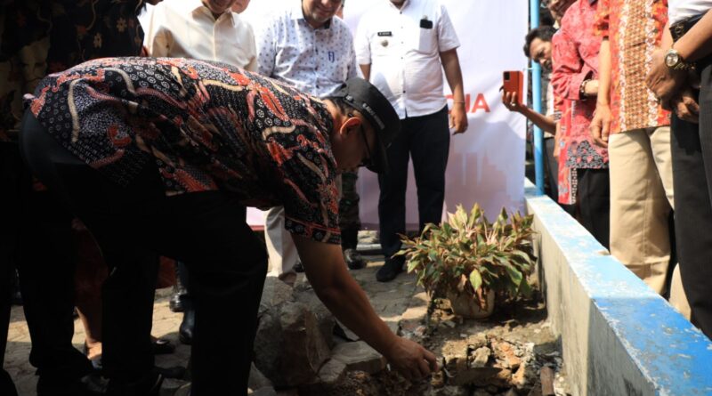 Pj Wali Kota Bekasi Gani Muhamad di temani bersama Asisten Pemerintahan Lintong Dianto Putra, Camat Bekasi Utara Supono Bram serta Lurah dan Unsur TNI Polri yang hadir langsung bersama pada Groundbreaking tersebut.