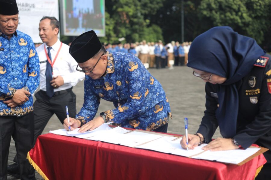 Rangkaian apel pagi ini juga telah dilaksanakan pendandatanganan kerjasama antara Pemerintah Kota Bekasi dengan Kantor Pengawasan Bea Cukai tipe Madya Pabean A Bekasi tentang sinergi pemberdayaan dan fasilitas kepabean bagi industri kecil menengah, usaha kecil dan menengah di Kota Bekasi.(Nad)