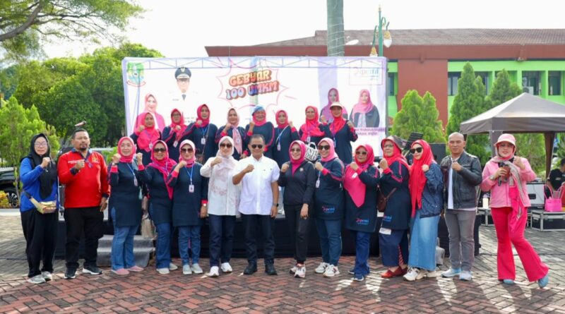 Gebyar Bazaar 100 UMKM dibuka langsung oleh Pj. Wali Kota Bekasi, Gani Muhamad, yang hadir didampingi oleh sang istri, Yolla Kusuma Gani selaku Ketua Dekranasda Kota Bekasi.