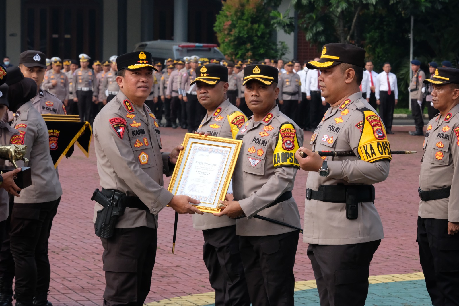 Penyerahan Piagam dan Sertifikat hasil penilaian kepatuhan penyelenggaraan pelayanan publik Tahun 2023 kepada Polres jajaran Polda Banten :