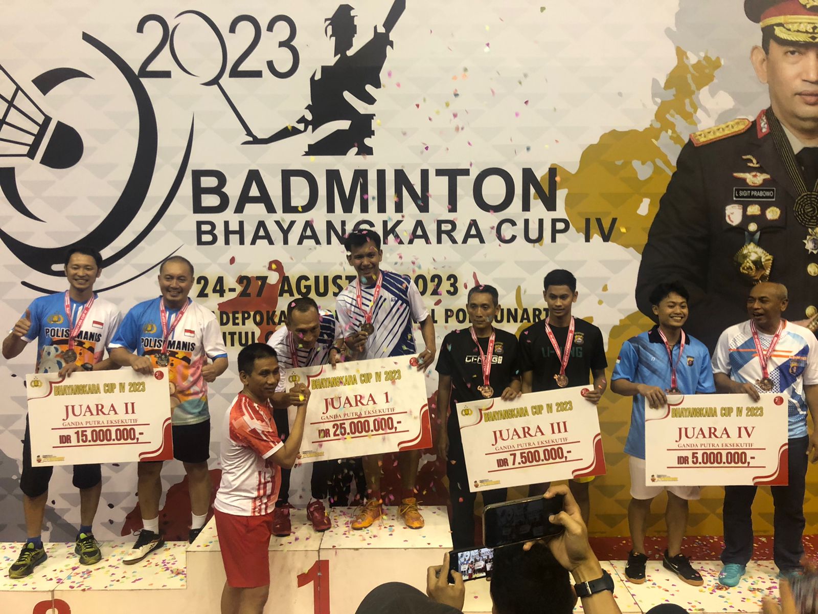 Sedangkan untuk juara 1 di nomor Ganda Eksekutif, yakni pasangan Akram-Amostian perwakilan dari Korbrimob dengan menaklukan pasangan Eddwi Kumiyanto-Frans Kurniawan perwakilan dari Polda Aceh dan keluar sebagai juara 2.