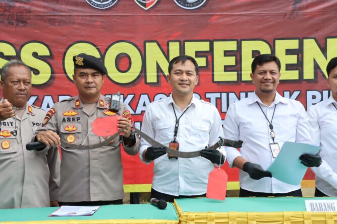 Kapolres Cilegon Polda Banten AKBP Eko Tjahyo Untoro melalui Kanit Tipidter IPTU Yogi fahrisal pada saat press conference membenarkan hal tersebut. “Pada Senin (28/08) sekira pukul 10.30 Wib menjelaskan bahwa pihaknya pada Minggu (16/07) sekitar jam 02.30 di depan kantor pengadilan agama Cilegon Komplek Perkantoran Sukmajaya Jalan Ahmad Yani Sukmajaya kecamatan Jombang Kota Cilegon, pada saat tim jawara sedang melaksanakan patroli kegiatan rutin yang ditingkatkan atau KRYD kemudian melihat adanya segerombolan anak-anak remaja yang sedang nongkrong sedang berkumpul di depan kantor Agama Kota Cirebon karna merasa curiga tim jawara tersebut mendekat anak-anak remaja tersebut dan ada salah satu kendaraan Yamaha Xeon Nopo A 3321 VS warna biru yang yang dikendarai oleh FR (17) dan FH (17) terlihat sedang menyembunyikan senjata tajam jenis celurit tersebut diduduki oleh FR dan FH lalu BRIGPOL Gunawan Putra Rahman langsung memegang badan FRS dan FRH kemudian dua orang tersebut diamankan oleh pihak kepolisian beserta dua senjata tajam jenis Celurit dan satu unit sepeda motor merek Yamaha Xeon berwarna biru Nopol : A-3321-VS,” kata Yogi.