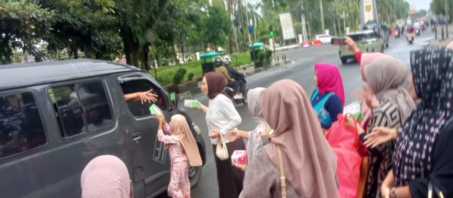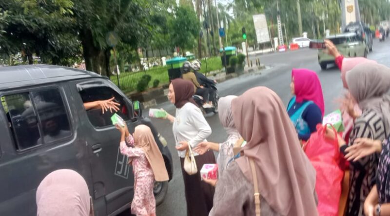 FAJARLAMPUNG.COM, Pandeglang – Puluhan istri anggota DPRD yang tergabung dalam Ikatan Istri Anggota Dewan (IKIAD) Kabupaten Pandeglang membagikan ratusan paket takjil kepada pengendara yang melintas di depan Gedung DPRD Kabupaten Pandeglang, Sabtu (7/3/2026).