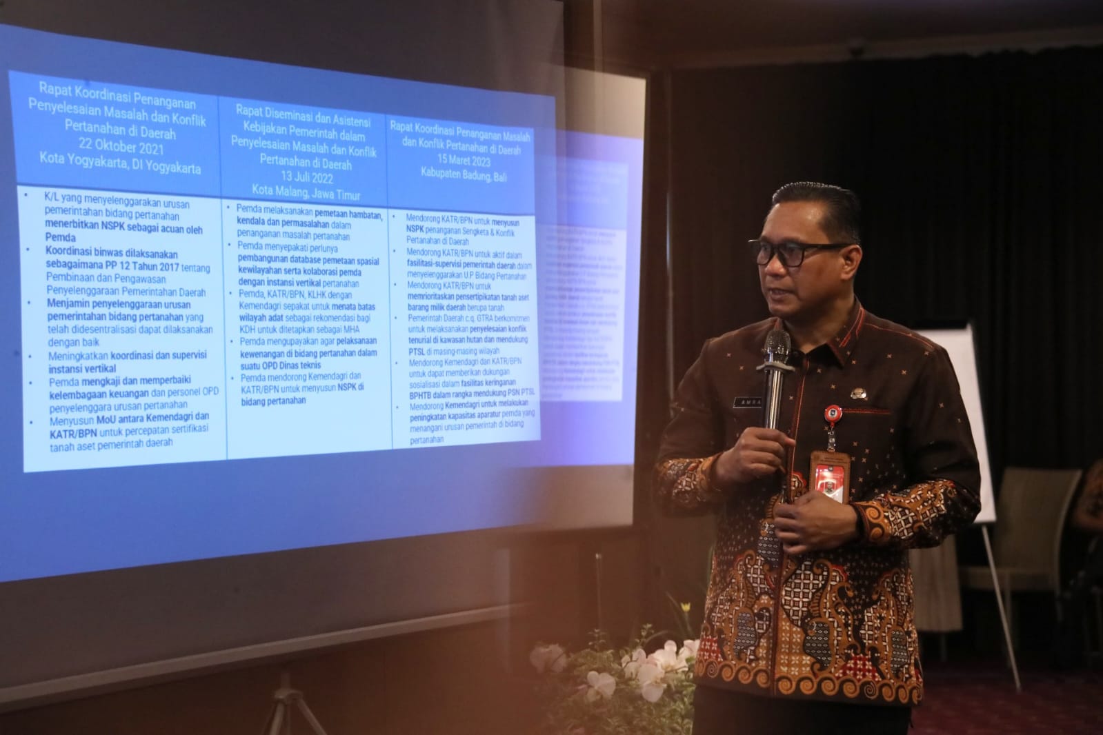 FAJARLAMPUNG.COM – Malang, Pelaksana Harian (Plh.) Direktur Jenderal (Dirjen) Bina Administrasi Kewilayahan (Adwil) Kementerian Dalam Negeri (Kemendagri) Amran mengatakan, pemerintah terus berkomitmen menyelesaikan konflik pertanahan. Upaya tersebut diwujudkan salah satunya melalui kebijakan reforma agraria, yang bertujuan untuk mengantisipasi dan mencegah konflik pertanahan.