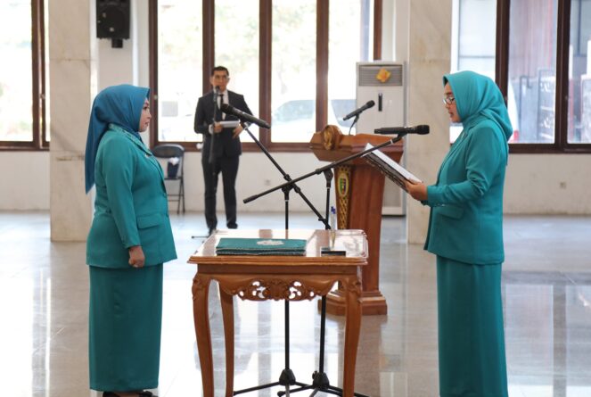 FAJARLAMPUNG.COM – Bandar Lampung, Ketua Tim Penggerak PKK Provinsi Lampung Ibu Riana Sari Arinal melantik Hellen Veranica Mulyadi sebagai Penjabat (Pj) Ketua Tim Penggerak PKK dan Dekranasda Kabupaten Tanggamus di Aula Mahan Agung, Rabu (27/9/2023).