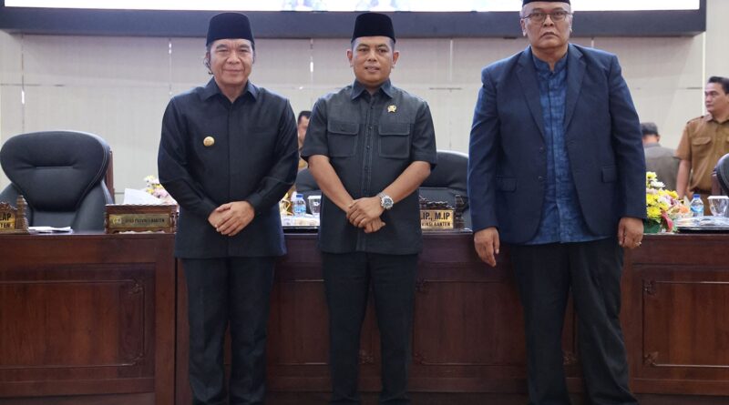 FAJARLAMPUNG.COM – Serang, Penjabat (Pj) Gubernur Banten Al Muktabar menyampaikan nota pengantar Gubernur mengenai Rancangan Peraturan Daerah (Raperda) usul Gubernur tentang Rencana Pembangunan Jangka Panjang Daerah (RPJPD) 2025-2045 pada Rapat Paripurna Dewan Perwakilan Rakyat Daerah (DPRD) Banten, di Ruang Rapat Paripurna DPRD Banten KP3B, Curug Kota Serang, Selasa (4/6/2024). Fokus pembangunan 20 tahunan itu pada pembangunan dan pengembangan sumber daya manusia.