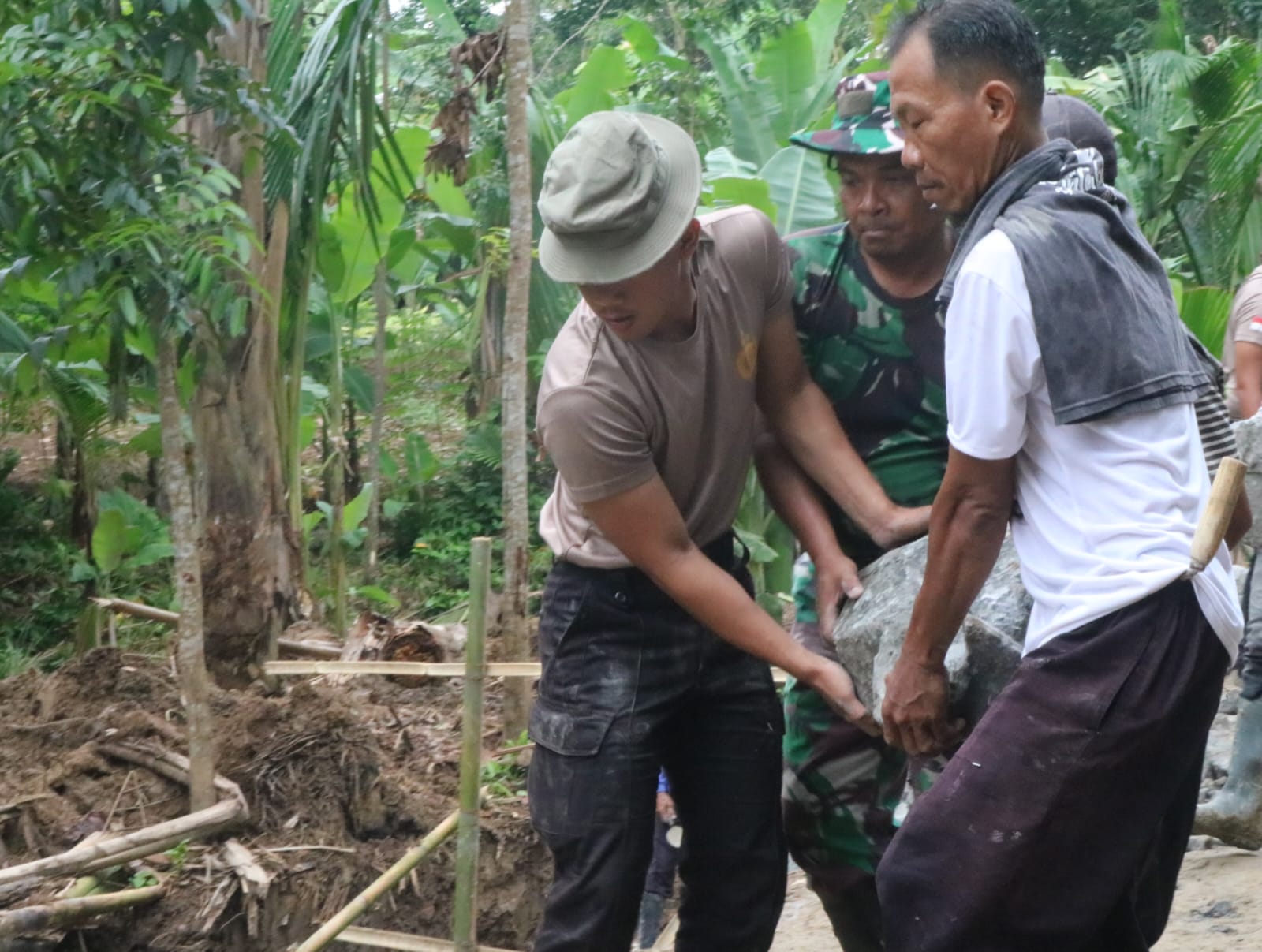 Komandan Satuan Penugasan (Dansatgas) TMMD Kodim 0602/Serang Letnan Kolonel (Letkol) Inf Mulyo Junaidi, melalui Komandan Satuan Setingkat Kompi (Dan SSK) Kapten Inf Irwan Agustia, menjelaskan bahwa secara bergotongroyong dengan masyarakat terus bekerja keras membuka akses jalan sepanjang 507 (Lima Ratus Tujuh) Meter, sehingga akan selesai sesuai dengan target yang telah ditentukan.