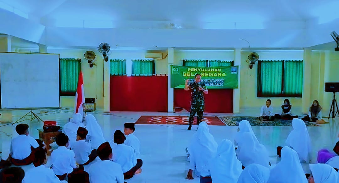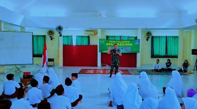 FAJARLAMPUNG.COM – Serang, Dalam rangka membentuk karakter generasi muda dan meningkatkan jiwa nasionalisme, Satgas TNI Manunggal Membangun Desa (TMMD) Ke-119 Kodim 0602/Serang bekerjasama dengan Pemerintah Daerah Kabupaten Serang, menggelar Penyuluhan Bela Negara kepada para Santri dan Santriwati, bertempat di Pondok Pesantren Modern Shohibul Muslim, Kecamatan Tunjung Teja, Kabupaten Serang Provinsi Banten, Sabtu, (24/2/2024).