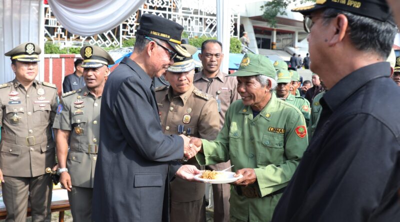 Dalam upacara ini dimeriahkan dengan pemotongan tumpeng dan turut pula diserahkan Piagam Penghargaan kepada Anggota Satlinmas yang telah memberikan pengabdian dengan masa bakti selama 30 tahun.