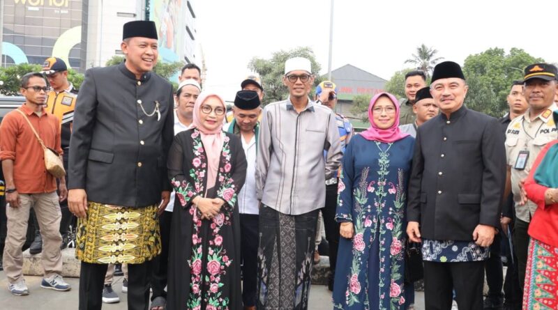 FAJARLAMPUNG.COM, KotaBekasi – Wali Kota Bekasi, Tri Adhianto dengan berbusana pangsi ditemani istri, juga Wakil Wali Kota Bekasi, Harris Bobihoe hadir dalam kemeriahan Lebaran Bekasi yang di gelar di Plaza Patriot Candrabhaga, sore ini.