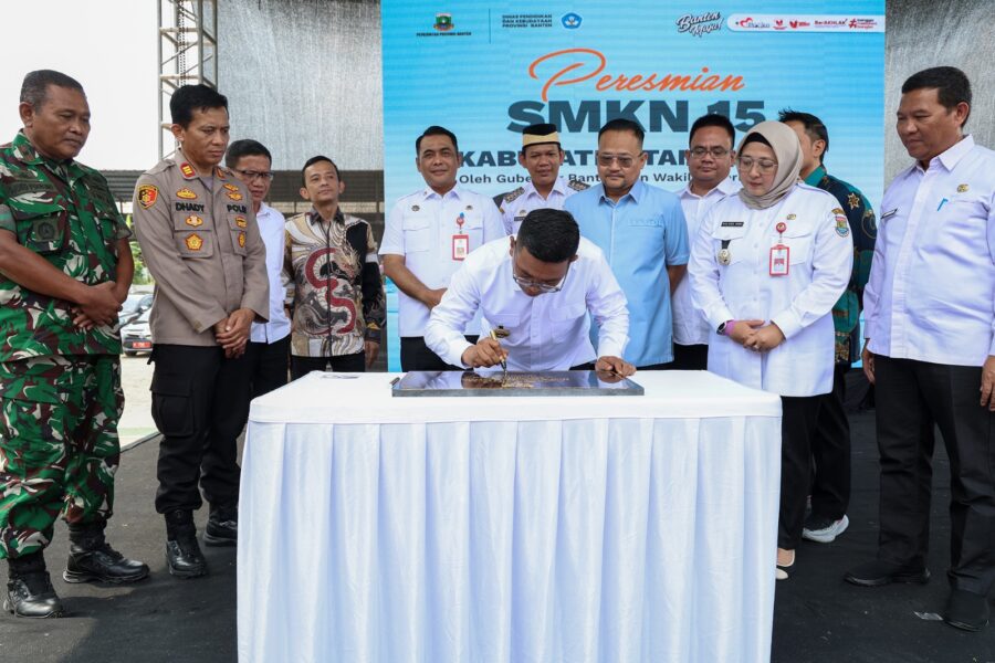 FAJARLAMPUNG.COM, Tangerang – Gubernur Banten Andra Soni meresmikan Sekolah Menengah Kejuruan Negeri (SMKN) 15 Kabupaten Tangerang di Desa Suradita Kecamatan Cisauk Kabupaten Tangerang, Rabu (7/5/2025). Sekolah baru itu memberikan kesempatan akses pendidikan masyarakat lebih merata.