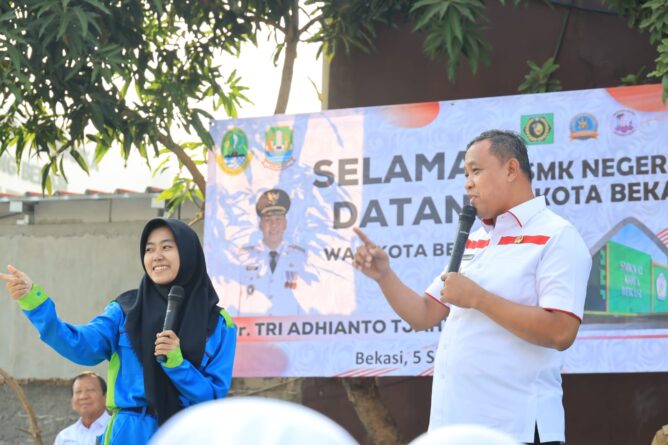 Pada Selasa, (05/09) Wali Kota Bekasi, Tri Adhianto berkesempatan sambangi SMK Negeri 12 di Kecamatan Pondokgede untuk langsung menyampaikan materi Sosialisasi Wawasan Kebangsaan.