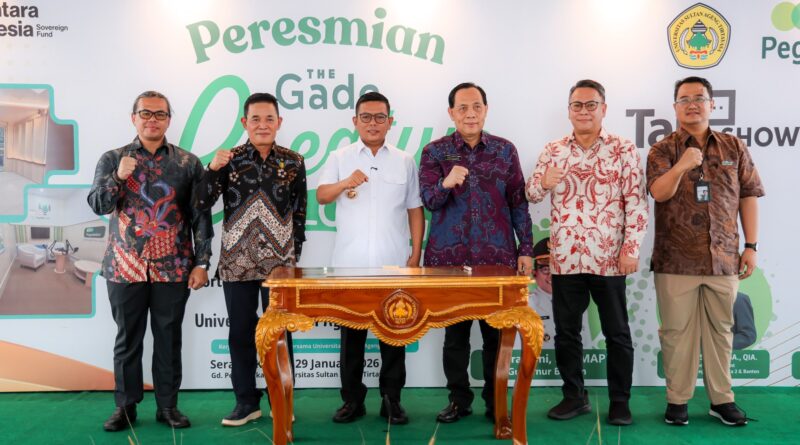 FAJARLAMPUNGCOM, Serang – Gubernur Banten Andra Soni meresmikan The Gade Creative Lounge Universitas Sultan Ageng Tirtayasa (Untirta) di Sindangsari, Kabupaten Serang, Kamis (29/1/2026). Fasilitas ruang baca hasil kerja sama dengan Kantor Pegadaian Regional Jakarta II dan Banten tersebut diharapkan dapat memberikan manfaat besar bagi pengayaan ilmu pengetahuan civitas akademika Untirta.