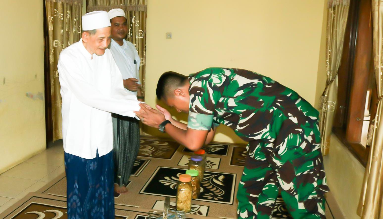 K.H. Nahrawi sendiri, dengan hangat menyambut kedatangan Dandim 0602/Serang di dampingi Danramil 0602-15/Baros Kapten Inf Yadi Kusmayadi.