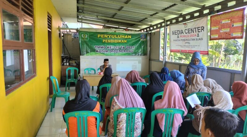 FAJARLAMPUNG.COM – Serang, Salah satu sasaran program Non Fisik, kegiatan TNI Manunggal Membangun Desa (TMMD) Ke-119 Kodim 0602/Serang bersinergi bersama Pemerintah Kabupaten Serang, menggelar Penyuluhan Pendidikan guna meningkatkan pemahaman masyarakat tentang pentingnya pendidikan karakter, bertempat di Desa Bojong Pandan Kecamatan Tunjung Teja Kabupaten Serang, Provinsi Banten, Jum’at (23/02/2024).