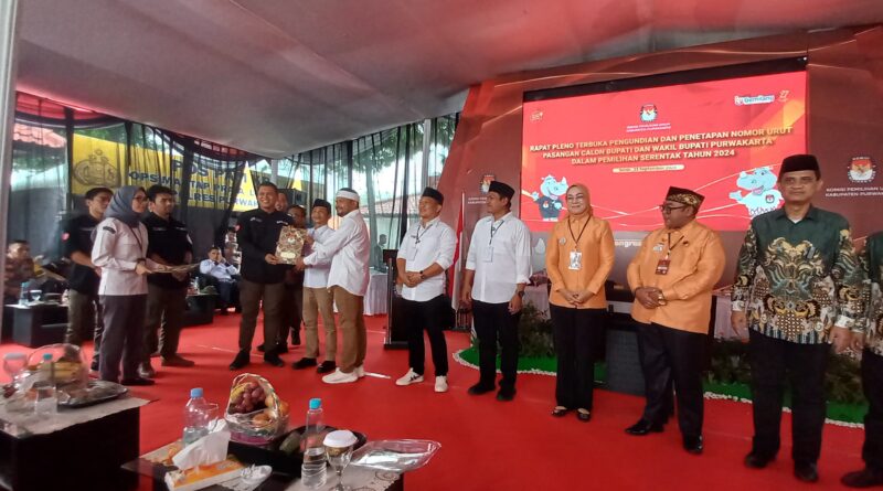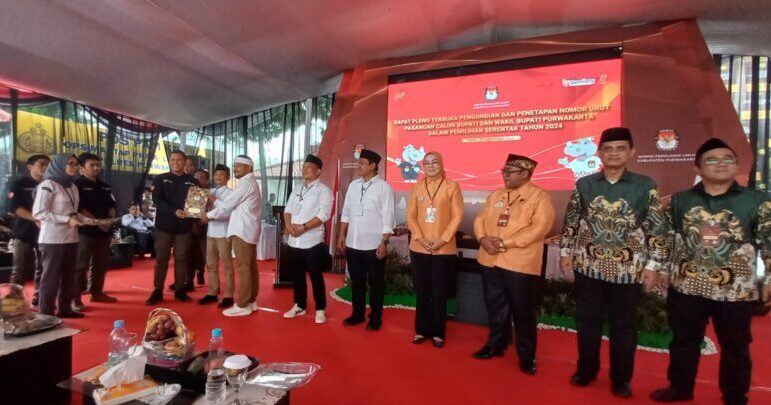FAJARLAMPUNG.COM, Purwakarta 23 September 2024– Komisi Pemilihan Umum (KPU) Kabupaten Purwakarta menggelar rapat pleno terbuka untuk pengundian dan penetapan nomor urut pasangan calon bupati dan wakil bupati Purwakarta dalam rangka Pemilihan Umum Serentak 2024. Acara yang berlangsung di Gedung KPU Purwakarta pada [tanggal acara] ini dihadiri oleh pasangan calon, tim sukses, partai pengusung, masyarakat, serta jajaran pemerintahan daerah.