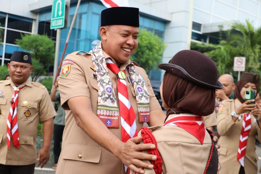 FAJARLAMPUNG.COM, Kota Bekasi – Dalam rangka Hari Pramuka ke-64, Gerakan Pramuka Kota Bekasi menggelar upacara peringatan di Plaza Kantor Pemerintah Kota Bekasi, Kamis (14/8). Acara dihadiri jajaran Forkopimda Kota Bekasi, Ketua Kwarcab Kota Bekasi Ade Puspita Sari, unsur Kwartir, para pembina, pelatih, serta anggota Pramuka dari berbagai tingkatan.
