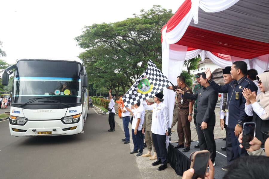 FAJARLAMPUNG.COM, Serang – Wakil Gubernur (Wagub) Banten A Dimyati Natakusumah melepas ribuan peserta mudik gratis di halaman Masjid Raya Al Bantani, KP3B Curug, Kota Serang, Rabu (26/3/2025). Mudik Gratis 2025 dengan 12 kabupaten/ kota di lima provinsi dengan 28 bus kapasitas 45 orang.