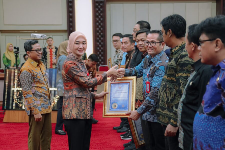 Sebagai bentuk apresiasi, pada kesempatan ini Pemerintah Provinsi Lampung juga menyerahkan piagam penghargaan dari Gubernur Lampung kepada pemerintah kabupaten/kota yang berhasil menyelesaikan seluruh tindak lanjut hasil pengawasan.