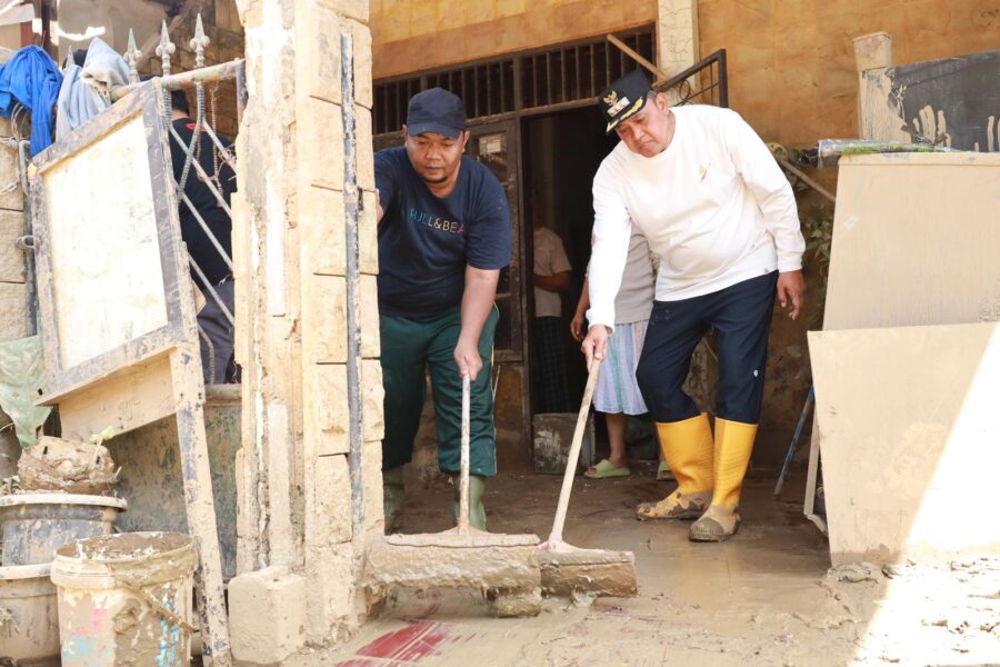Selain itu, Walikota Bekasi juga turut membantu salah satu warga yang kesulitan membersihkan rumahnya dari lumpur setelah beberapa hari terdampak banjir, bersama tim Pematusan yang bertugas di wilayah tersebut.