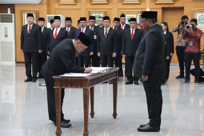 Hal itu disampaikan Wempi saat memberikan sambutan pada Pelantikan Pejabat Tinggi Pratama dan Pejabat Fungsional di Lingkungan Kementerian Dalam Negeri (Kemendagri), di Gedung Sasana Bhakti Praja (SBP) Kantor Pusat Kemendagri, Jakarta, Jumat (4/8/2023).