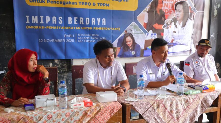 FAJARLAMPUNG.COM, Serang, 12 November 2025 – Kantor Wilayah Direktorat Jenderal Imigrasi Banten melaksanakan kegiatan Sosialisasi Desa Binaan Imigrasi dengan tema “Pencegahan Tindak Pidana Perdagangan Orang (TPPO) dan Tindak Pidana Penyelundupan Manusia (TPPM)”, bertempat di MTs Nurul Bahri, Desa Lontar, Kecamatan Tirtayasa, Kabupaten Serang. Kegiatan ini merupakan bagian dari implementasi program Desa Binaan Imigrasi yang digagas untuk meningkatkan kesadaran masyarakat terhadap bahaya kejahatan lintas negara, khususnya di wilayah pedesaan.