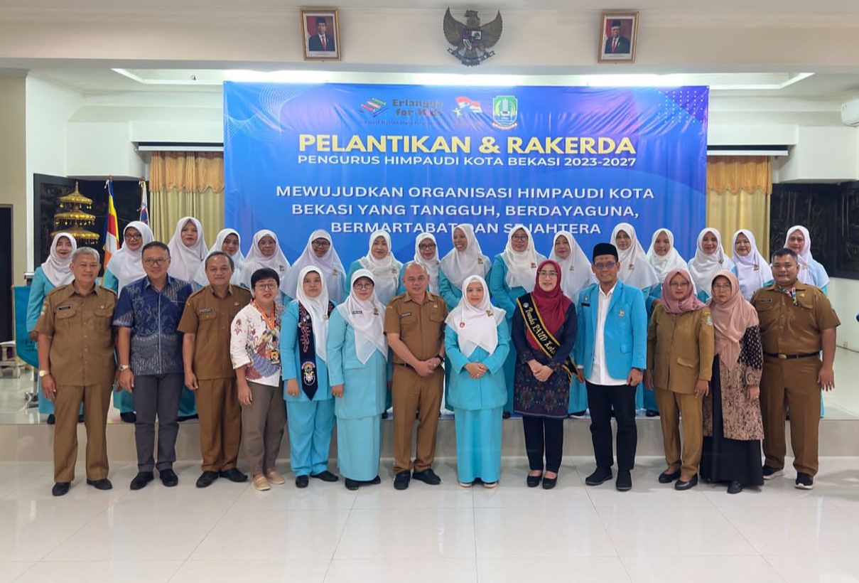 FAJARLAMPUNG.COM – Kota Bekasi, Bunda PAUD Kota Bekasi Yolla Kusuma Gani hadiri Pelantikan dan Rakerda pengurus Himpunan Pendidik dan Tenaga Kependidikan Anak Usia Dini Indonesia (Himpaudi) Kota Bekasi 2023-2027, kegiatan berlangsung di Aula SMP Ananda, Durenjaya, Bekasi Timur.