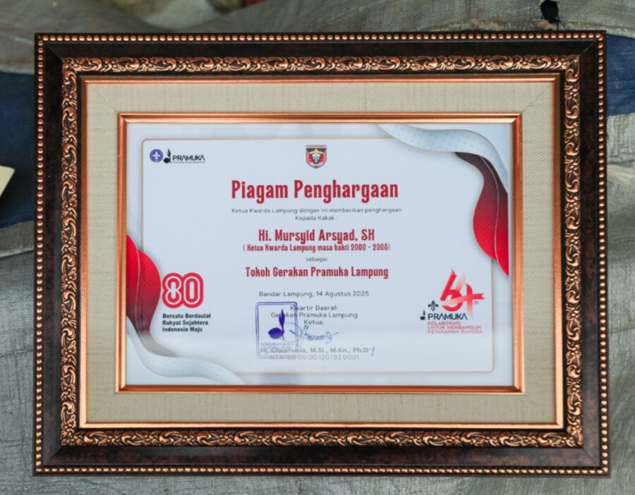 Seperti diketahui, kegiatan ini digelar berdasarkan Surat Keputusan Kwartir Daerah Gerakan Pramuka Lampung Nomor 108b Tahun 2025 tentang penetapan H. Mursyid Arsyad, S.H. sebagai Tokoh Gerakan Pramuka Lampung Tahun 2025. Dalam SK yang ditandatangani Chusnunia Chalim tersebut, disebutkan almarhum yang menjabat sebagai Ketua Kwarda Lampung masa bakti 2000–2005, yang dinilai memiliki jasa besar dalam pengabdian dan pengembangan gerakan Pramuka di Lampung. (Nad)